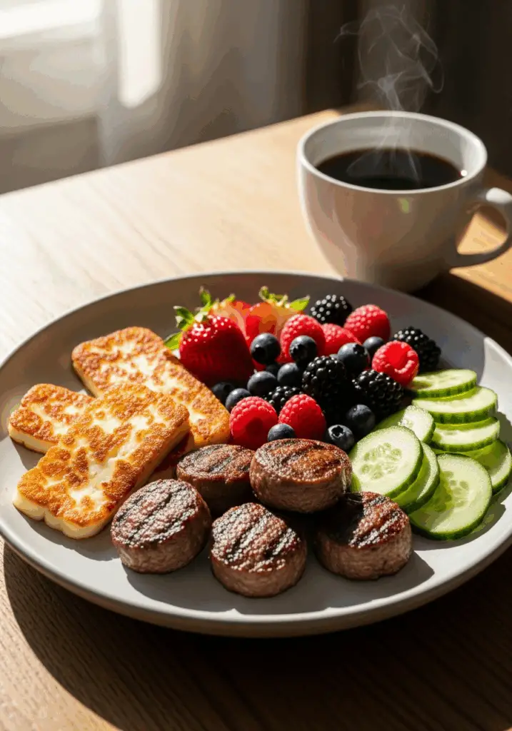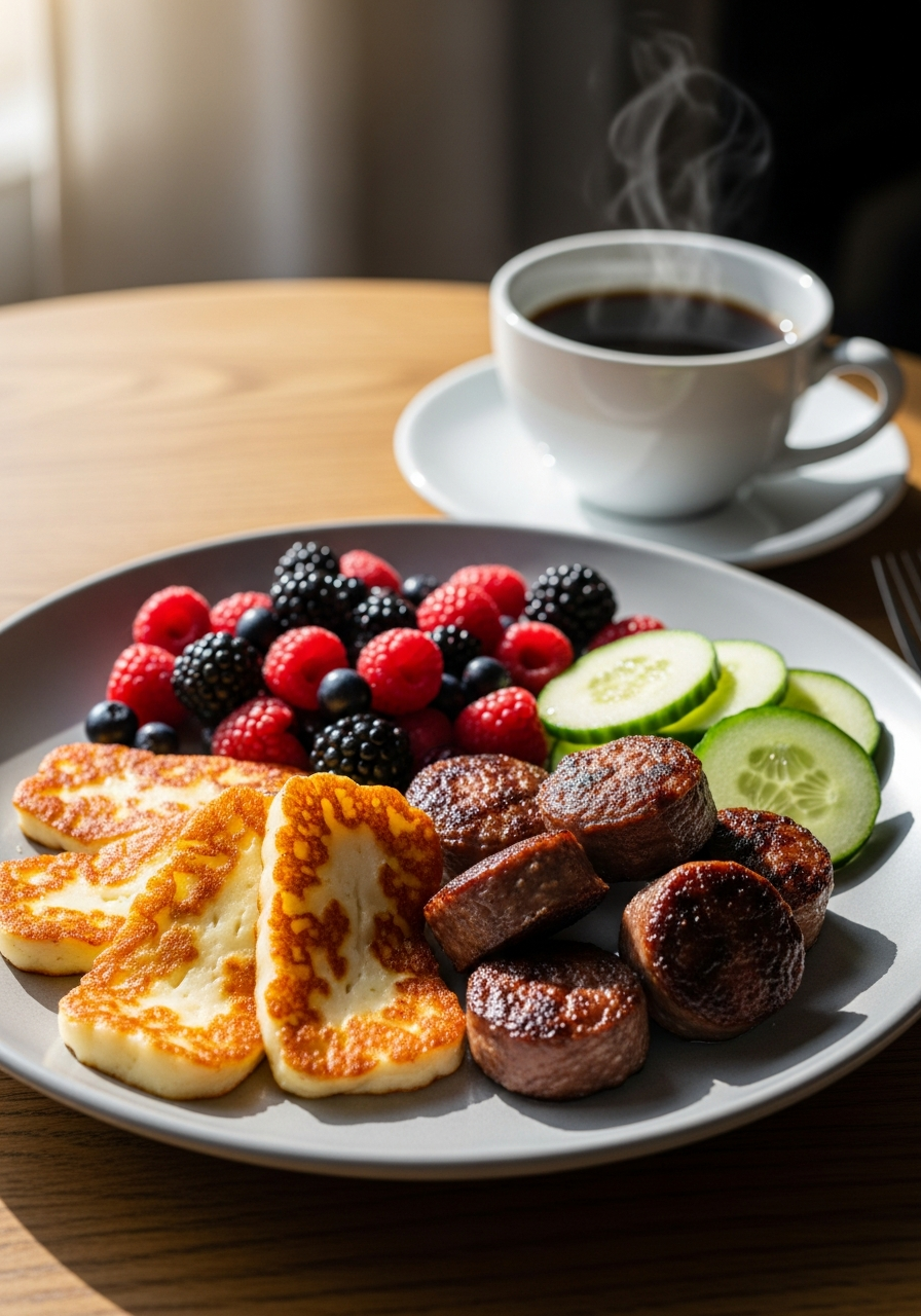 Imagine a breakfast that’s ready in 15 minutes, packed with protein, incredibly satisfying, and completely banishes breakfast boredom. That, my friends, is the simple, powerful magic of this Low-Carb Breakfast Plate. It’s a formula for a perfect morning, combining savory, juicy beef sausage with the incredible, crispy texture of pan-fried cheese and a side of fresh, vibrant fruits and veggies. This is, without a doubt, the easiest and most versatile low-carb breakfast idea you’ll ever need.