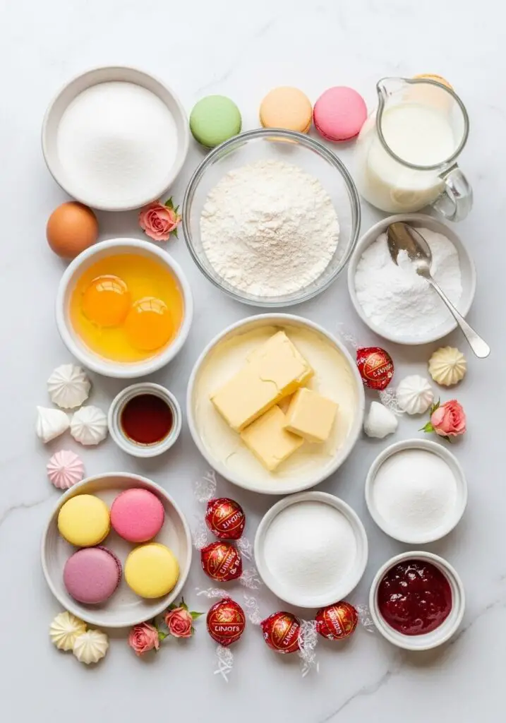 - The Royal Decorations: This is the best part! Artfully arrange your pastel macarons, sparkly meringues, Lindt chocolates, and fresh roses among the buttercream dots. Stand back and admire your breathtaking creation!