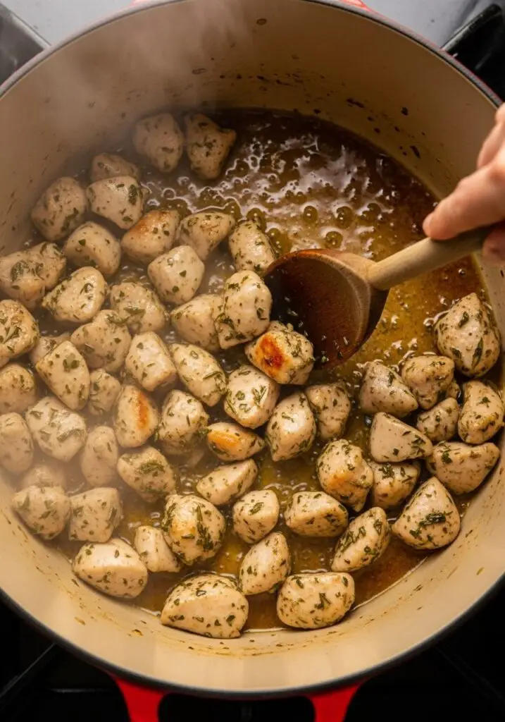 - Season and Cook the Chicken. Drizzle a little olive oil into a large pot or Dutch oven and heat it over medium-high heat. Add the diced chicken and season it generously with salt, pepper, 1 teaspoon of Italian seasoning, and 1/2 teaspoon of garlic powder. Cook, stirring occasionally, for about 5 minutes.