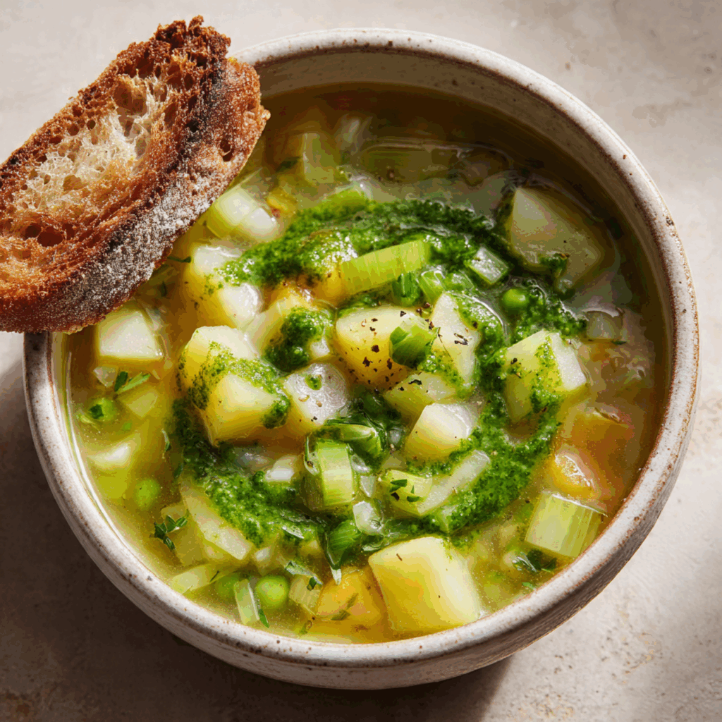 Imagine a soup that is the very essence of rustic, garden-fresh comfort, a beautiful and hearty bowl packed with tender winter vegetables like leeks, celery, and potatoes. Now, picture that simple, wholesome soup being transformed at the last moment with a vibrant, fragrant drizzle of fresh basil and garlic pesto, known as “pistou.” That, my friends, is the simple, stunning magic of this Winter Pistou Soup. It is, without a doubt, the most flavorful and satisfying vegetable soup you will make in just 30 minutes.