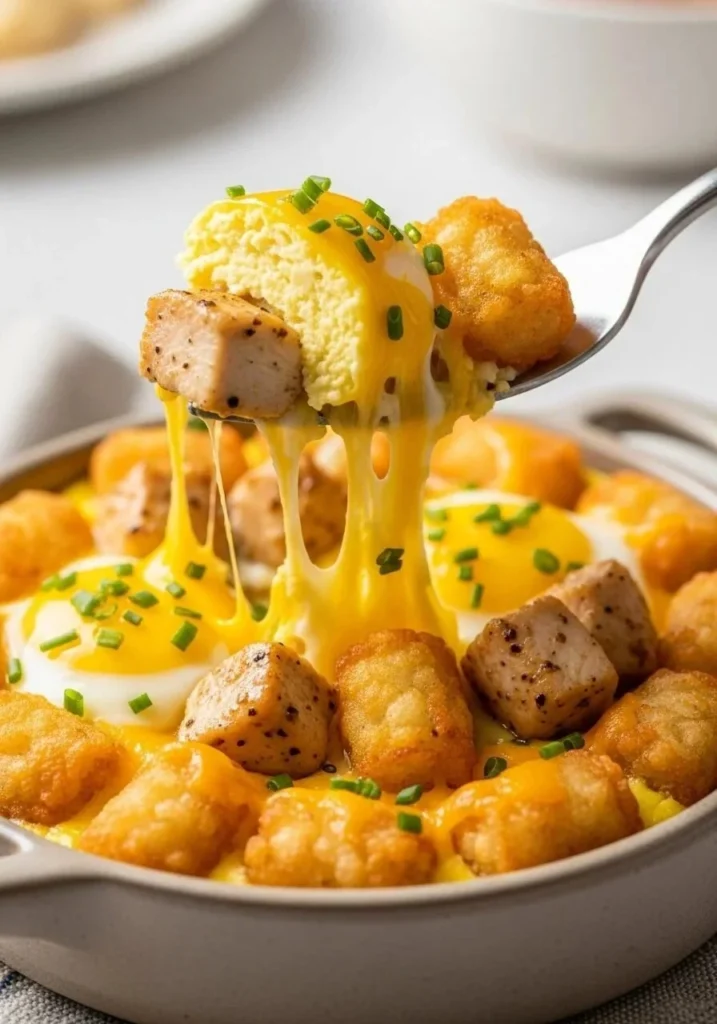 The morning I realized I had nothing fresh in the fridge but a box of tots and a bag of chicken nuggets, I decided to build a breakfast that felt like a hug and a small rebellion against cereal. I remember thinking aloud that an air fryer would solve everything—crisp, fast, and somehow more forgiving than a pan. For a baseline idea I once compared my instincts with a simple breakfast bowl recipe, which helped me calibrate cooking times.