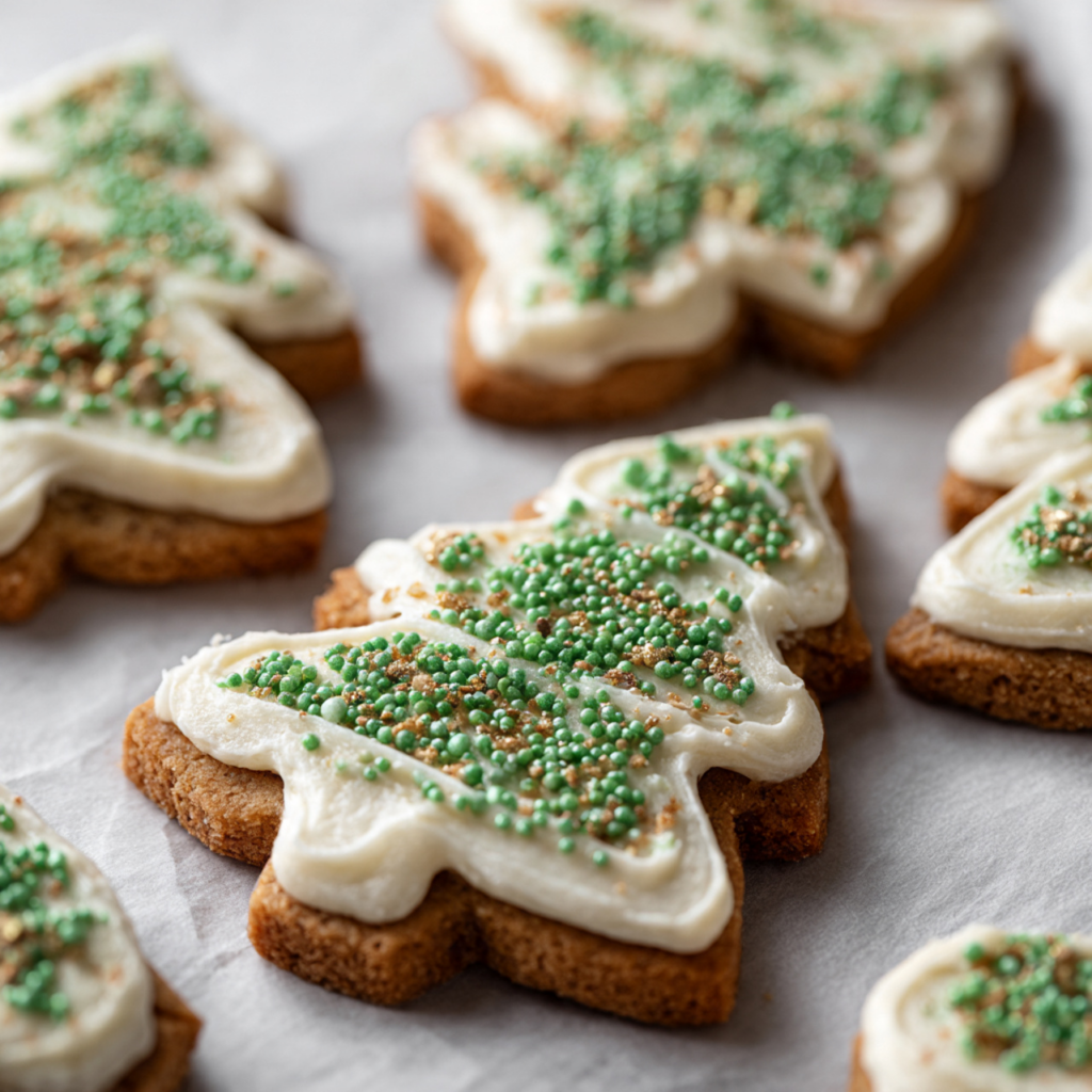 Almond Ginger Christmas Tree Cookies with Cream Cheese Frosting