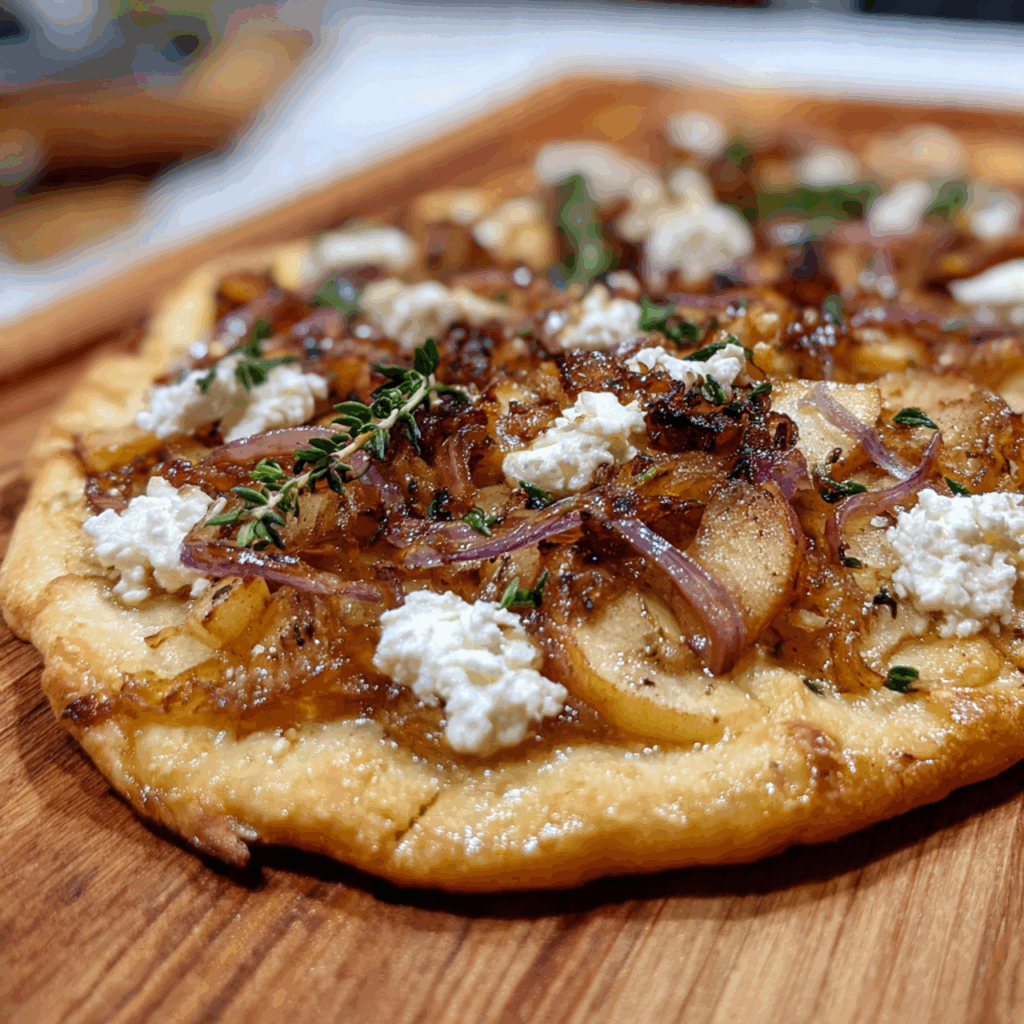 Autumn Apple Flatbread with Caramelized Onions and Ricotta