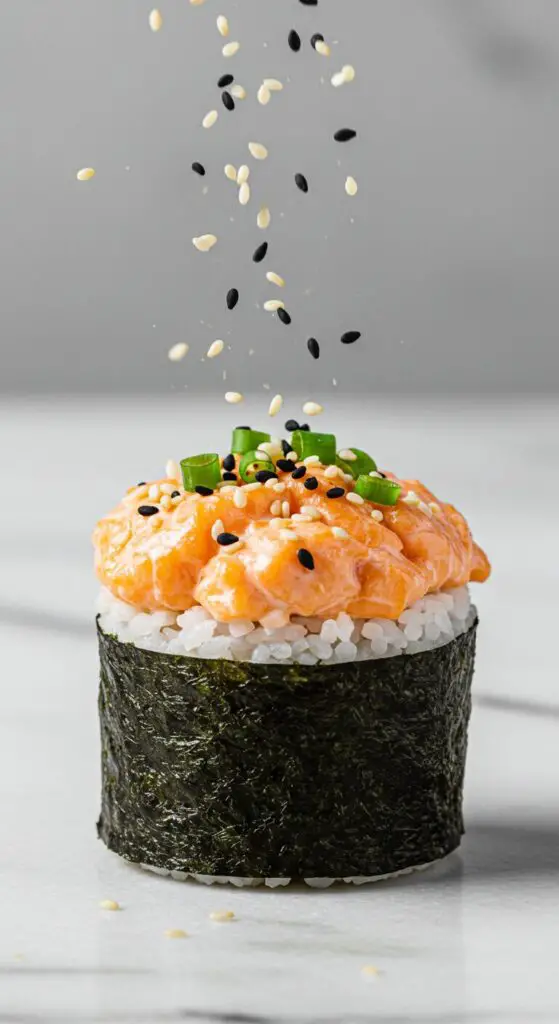 - All the Flavors of a Sushi Roll: You get the perfect combination of seasoned rice, savory nori, creamy spicy salmon, and classic garnishes, all in one perfect bite.