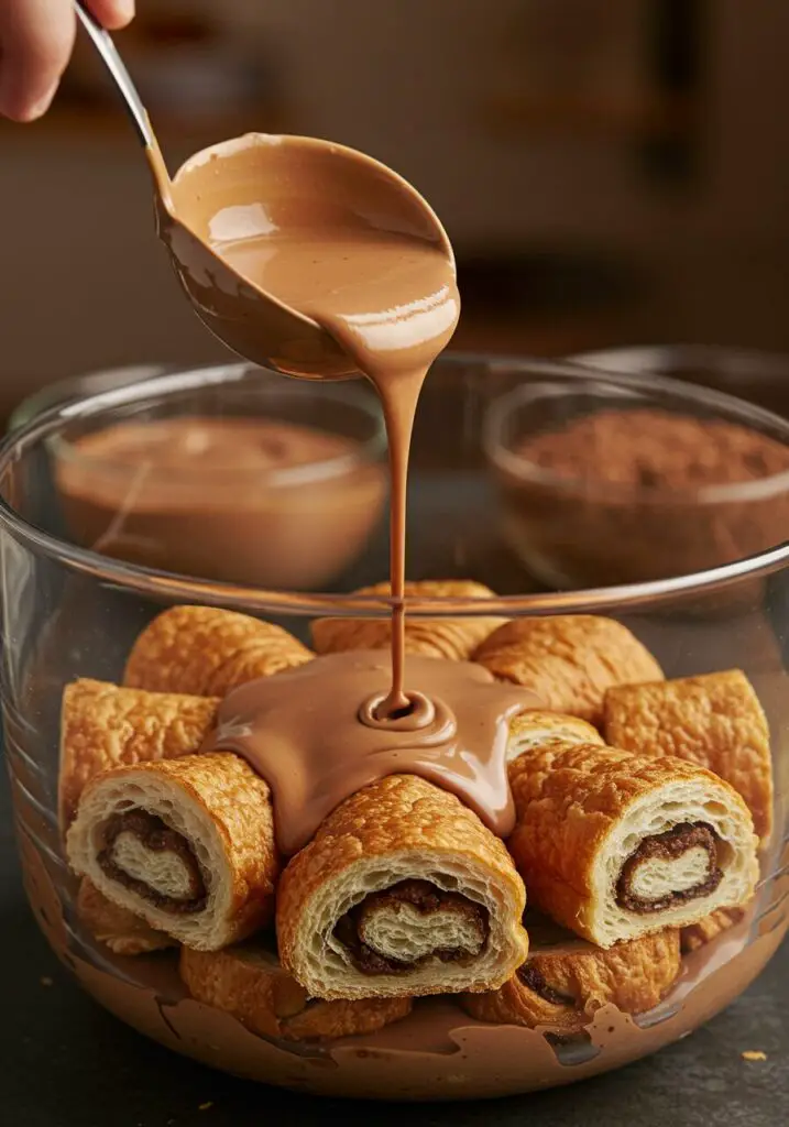 - Layer Chocolate Custard: Spoon over a generous layer of the rich chocolate custard, spreading it evenly over the pain au chocolat.