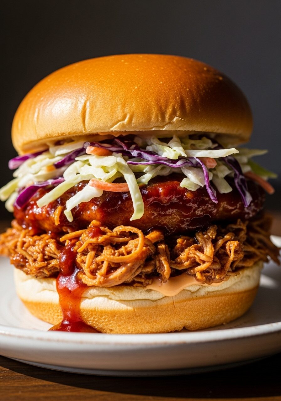- Assemble & Serve: Lightly toast your 6 potato buns. Pile a generous portion of the tender, shredded BBQ chicken onto each bun. Drizzle with a little extra barbecue sauce (if you like!), and top with a spoonful of cool, crisp coleslaw.