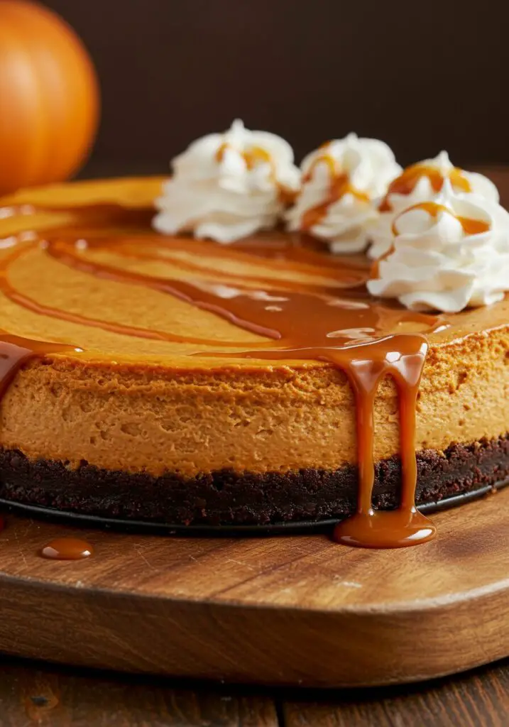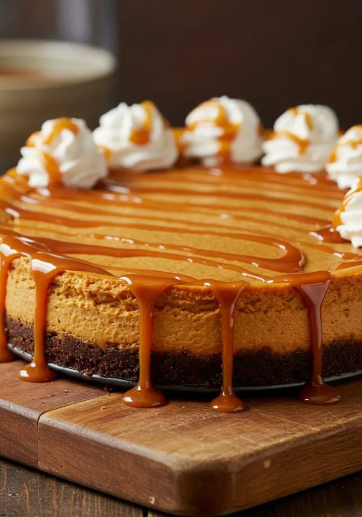 This isn’t just a cheesecake; it’s a celebration of decadent layers. We start by baking a rich, intensely chocolatey brownie right in the springform pan, which we then press down to form the most amazing, fudgy crust imaginable. Then, we top it with a silky smooth, perfectly spiced pumpkin cheesecake filling and bake it in a gentle water bath to ensure a perfectly creamy, crack-free finish. Drizzled with caramel, this is the ultimate showstopping dessert for Thanksgiving, a special occasion, or any time you want to truly wow your guests.