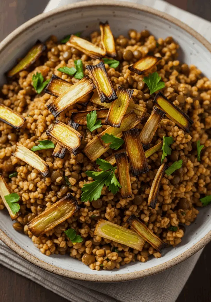Imagine a dish that is deeply comforting, incredibly nourishing, and brimming with the most wonderful earthy and aromatic flavors. That, my friends, is the simple, rustic magic of this Bulgur and Lentil Pilaf with Crispy Leeks. It’s a beautiful, wholesome meal where hearty lentils and nutty bulgur wheat are gently simmered with warm spices and topped with a crown of sweet, crispy leeks. This is, without a doubt, the most satisfying and soulful plant-based meal you will make.