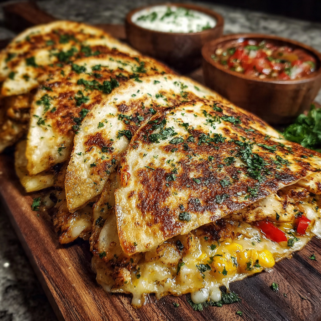 - Slice and Serve: Let the quesadillas rest for a minute before slicing each one into wedges. Serve immediately with a side of sour cream for dipping.