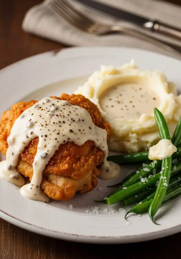 - The Perfect Creamy White Gravy: This from-scratch country gravy is rich, peppery, and luscious—the perfect velvety blanket for your crispy chicken.