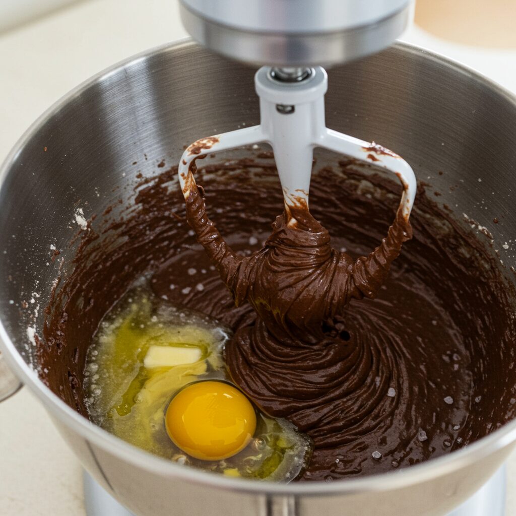 - Mix Dough: In a large bowl (or the bowl of an electric mixer), add the entire 18-oz. package of double chocolate brownie mix, ½ cup (4 oz.) melted salted butter, and 1 large egg. Beat with an electric mixer on medium speed until the mixture is just combined, about 1 minute. Be careful not to over-mix!