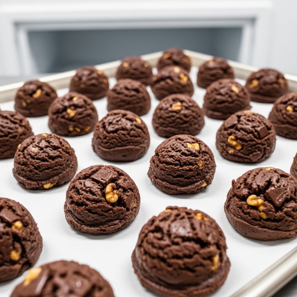 - Freeze Dough (Crucial Step!): Working in batches if necessary (if your freezer isn’t big enough for both sheets), place the cookie sheets with the scooped cookie dough into the freezer. Freeze until the cookies are thoroughly chilled and firm, about 15 minutes. This chilling step is crucial for preventing excessive spreading and ensuring fudgy centers!