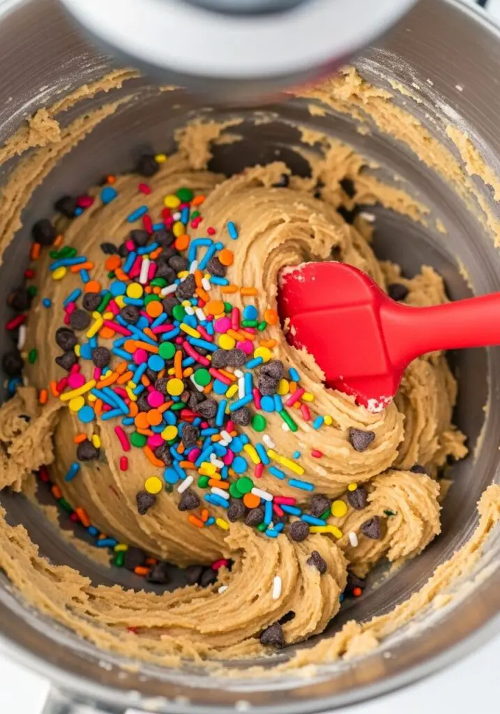 - Fold in the Fun!: Gently fold in the sprinkles and chocolate chips with a spatula until they are evenly distributed. Be careful not to overmix!