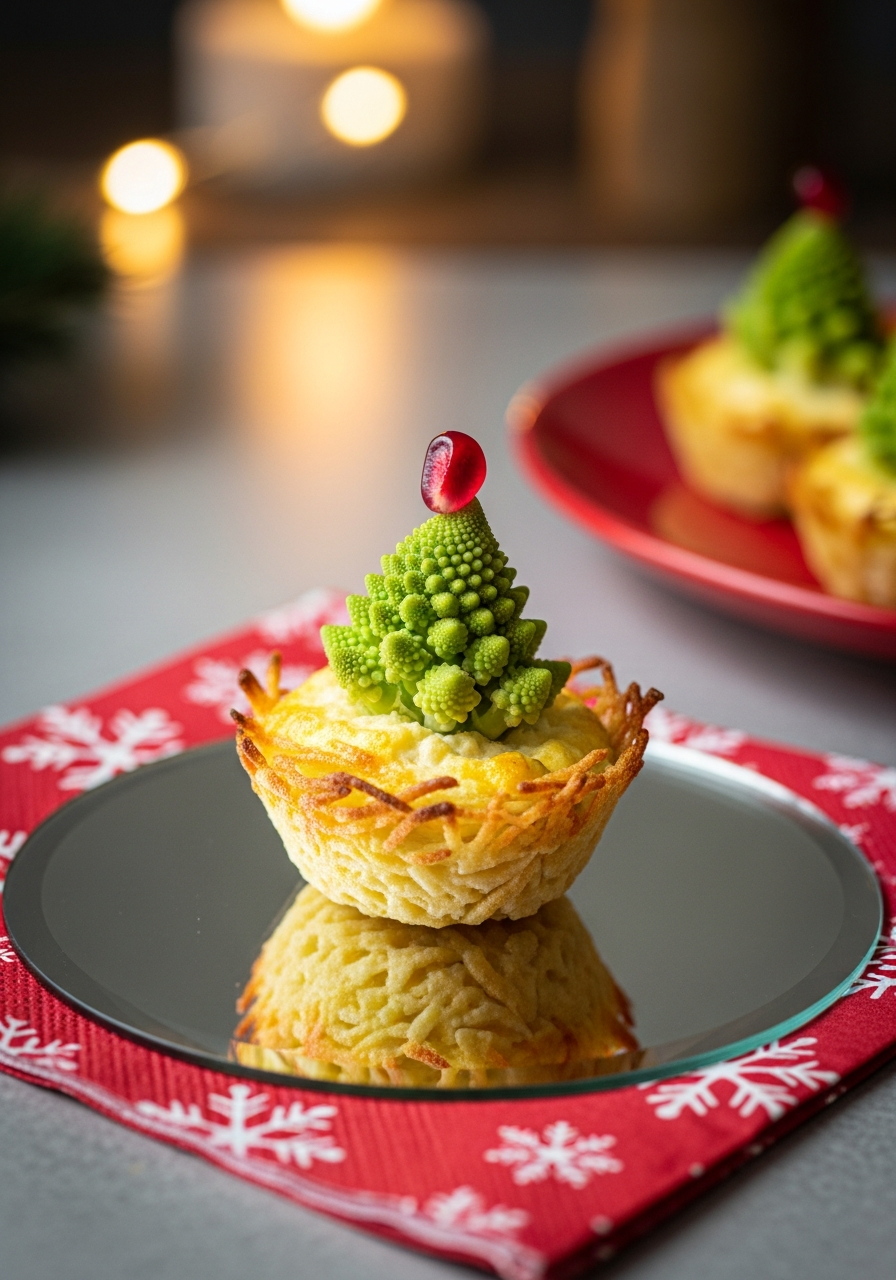 Imagine serving a platter of the most enchanting holiday appetizers imaginable: tiny, crispy nests made of golden-brown potato, filled with a fluffy egg and goat cheese custard, and topped with a whimsical little Christmas tree made from Romanesco broccoli. That, my friends, is the incredible, edible art of these mini quiches, and they are, without a doubt, the most creative and memorable appetizer you will make all season.