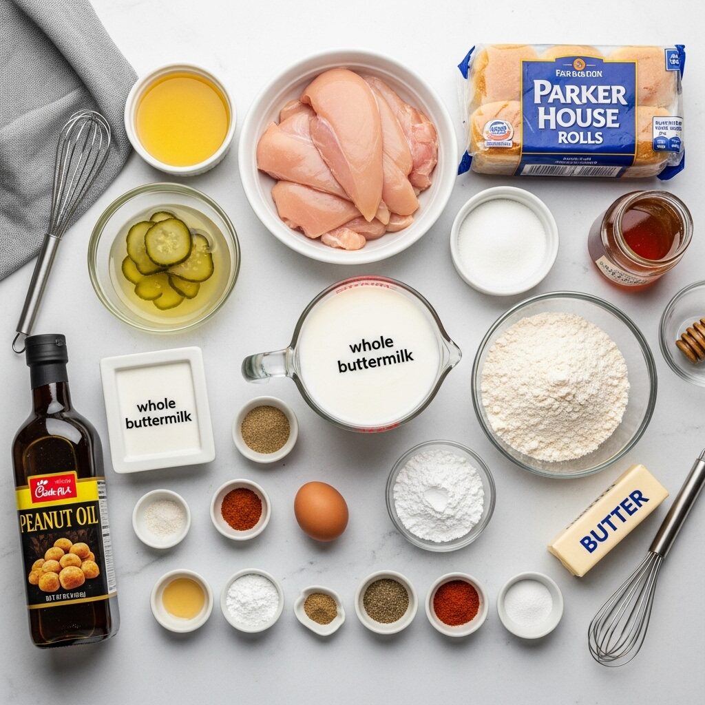 Creating these incredible Copycat Chick-Fil-A Chicken Minis uses a blend of pantry staples and a few specific ingredients. Here’s what you’ll want to grab to get started!