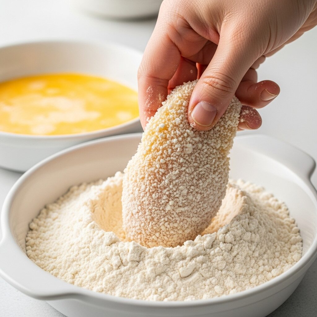 - Coat Chicken Pieces: Dredge the brined chicken pieces in the dry flour mixture first, making sure to shake off any excess. Then, toss the floured chicken in the wet egg mixture to coat. Finally, transfer the chicken back to the dry flour mixture and dredge again, pressing the flour mixture firmly to adhere to the chicken. This double dredge ensures maximum crispness!