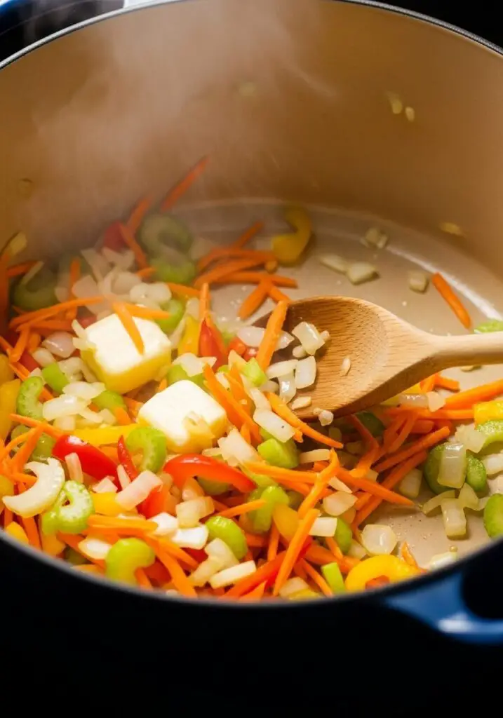 - Sauté the Aromatics: In a large Dutch oven or stockpot, heat the butter or oil over medium heat. Add the finely chopped onion with a pinch of salt and pepper and cook for 3-5 minutes, until the onions have softened.