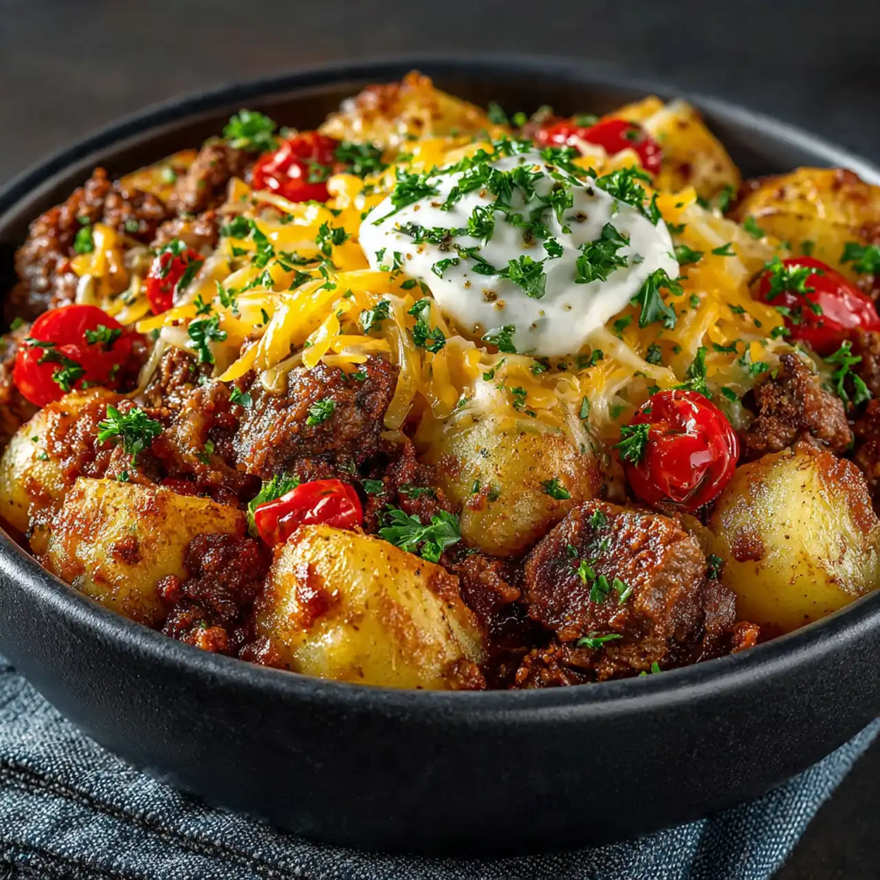 - Sour cream and chopped chives → The perfect cool and fresh finishing touches.