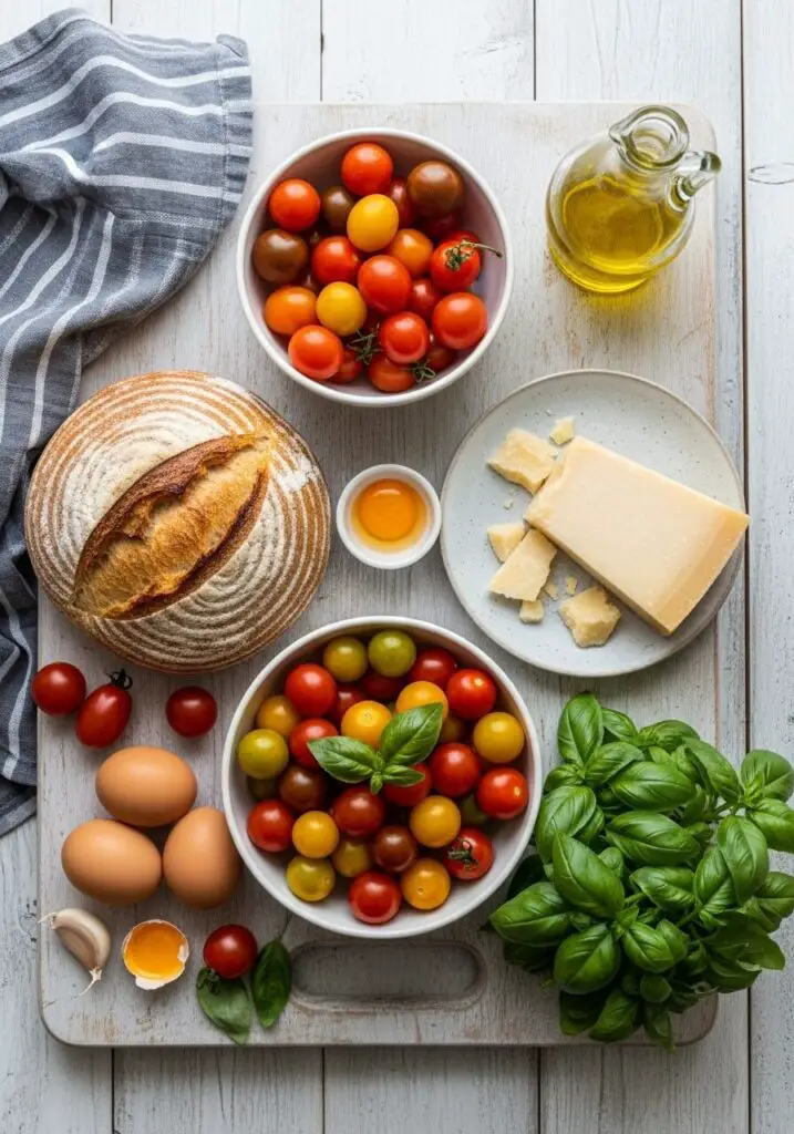 Christmas morning is a flurry of beautiful, chaotic energy. There are presents to unwrap, coffee to be poured, and a palpable sense of joy in the air. The last thing you want is to be stuck in the kitchen with a complicated, time-consuming breakfast. You need something that feels special and celebratory, but that comes together in a flash, leaving you more time for what truly matters: family. This Festive Egg Bruschetta is the answer to your Christmas morning prayers. It is a breath of fresh, vibrant air amidst the richness of holiday food. Imagine thick, crusty slices of sourdough toast, piled high with the most incredibly soft, silky, Parmesan-infused scrambled eggs. That glorious base is then topped with a bright, juicy salad of cherry tomatoes, torn basil, and a little kick of chili. It’s elegant, it’s incredibly delicious, and here’s the best part: it all comes together in just 15 minutes. This is the recipe that lets you serve a stunning, restaurant-quality breakfast without missing a single moment of the morning’s magic.