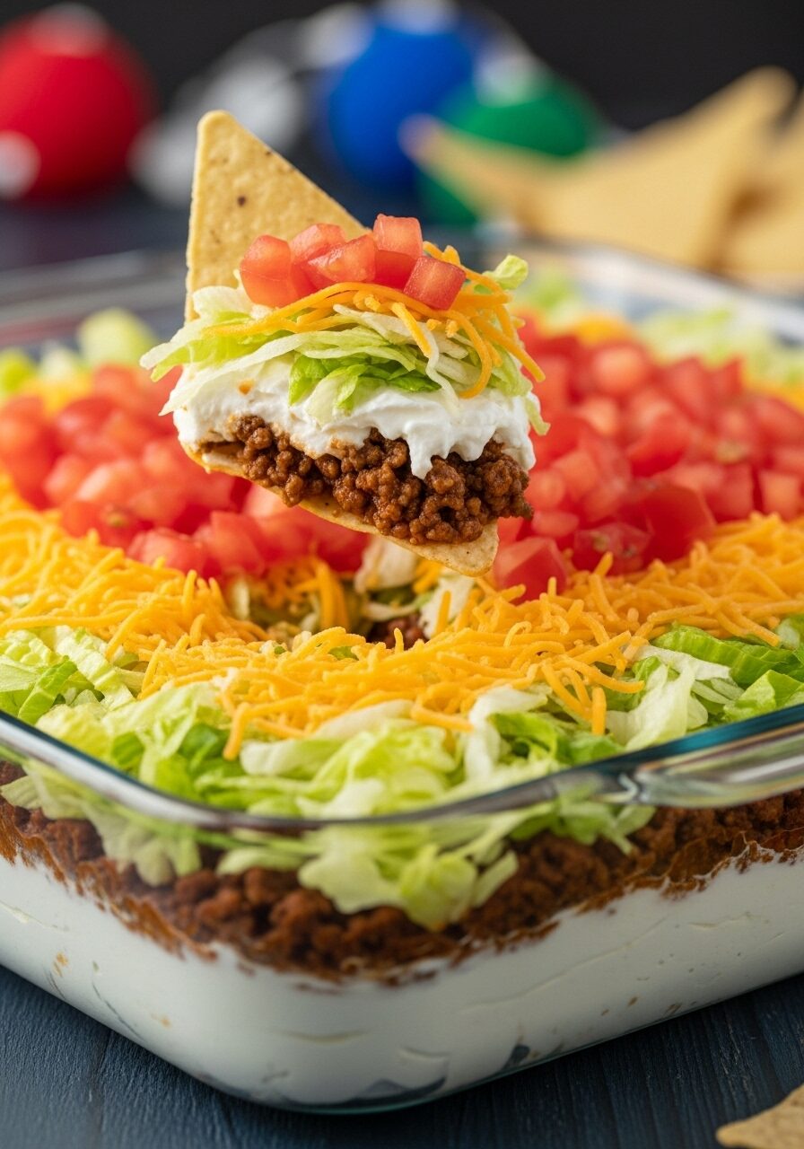This recipe is my secret weapon for effortless entertaining. It’s my go-to for every game day, potluck, and casual get-together because it delivers that huge “wow” factor with almost zero stress. It has all the incredible, satisfying flavor of a fully loaded taco, but transformed into a scoopable, shareable masterpiece. The warm, seasoned beef layer is a total game-changer that sets it apart from all the others.