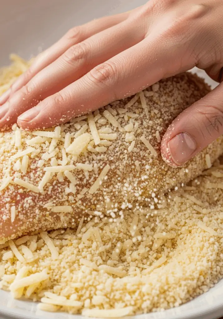 - Press the Breading Firmly. After dipping the chicken in the egg, make sure to press it firmly into the Parmesan-breadcrumb mixture. This helps the coating adhere properly and ensures you get a thick, crunchy crust.