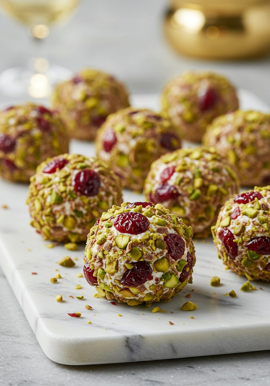 - Coat and Serve: Roll each cheese ball in the cranberry-pistachio mixture until it’s completely and generously coated. If you aren’t serving them right away, you can place the finished cheese balls on a plate, cover them with plastic wrap, and keep them refrigerated.