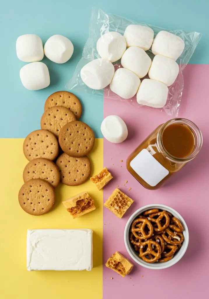 - Assorted marshmallows, chocolate-covered pretzels, fudge pieces, and honeycomb candy (like Crunchie bars)
