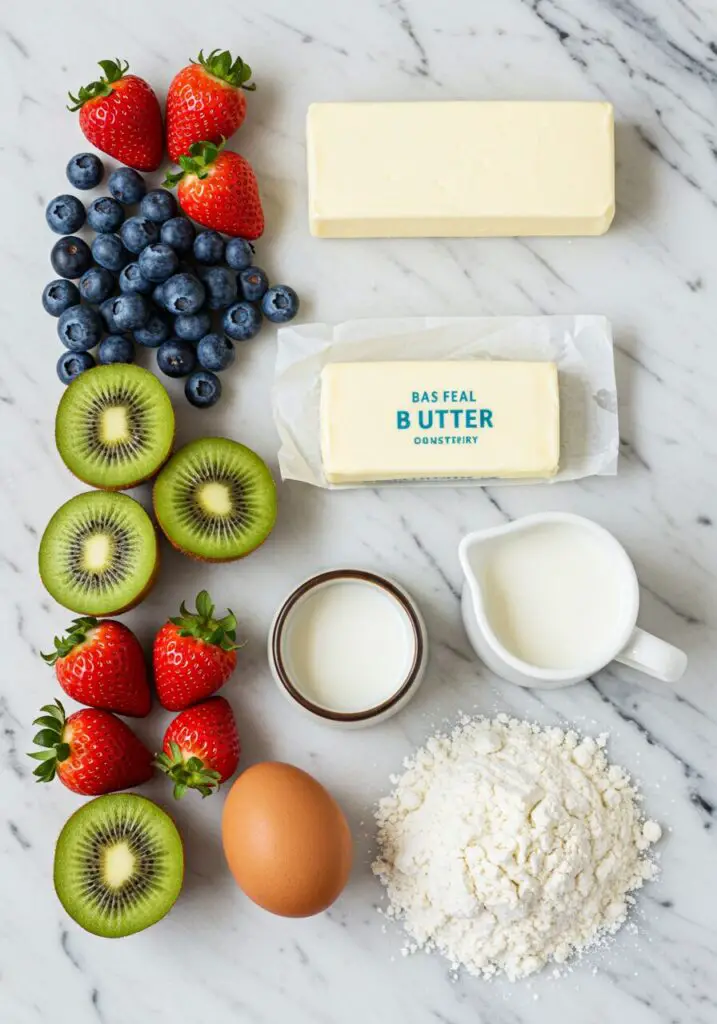 - About 1 pint of assorted fresh cut fruit (strawberries, blueberries, raspberries, kiwi, mango, etc.)