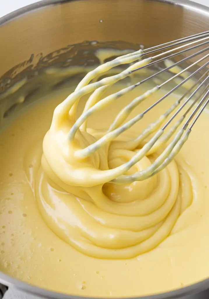 - Temper the Eggs: In a large bowl, whisk together the egg yolks and sugar until pale. Whisk in the cornstarch and salt. While whisking constantly, slowly pour about half of the hot milk into the egg yolk mixture. This gently warms the eggs and prevents them from scrambling.