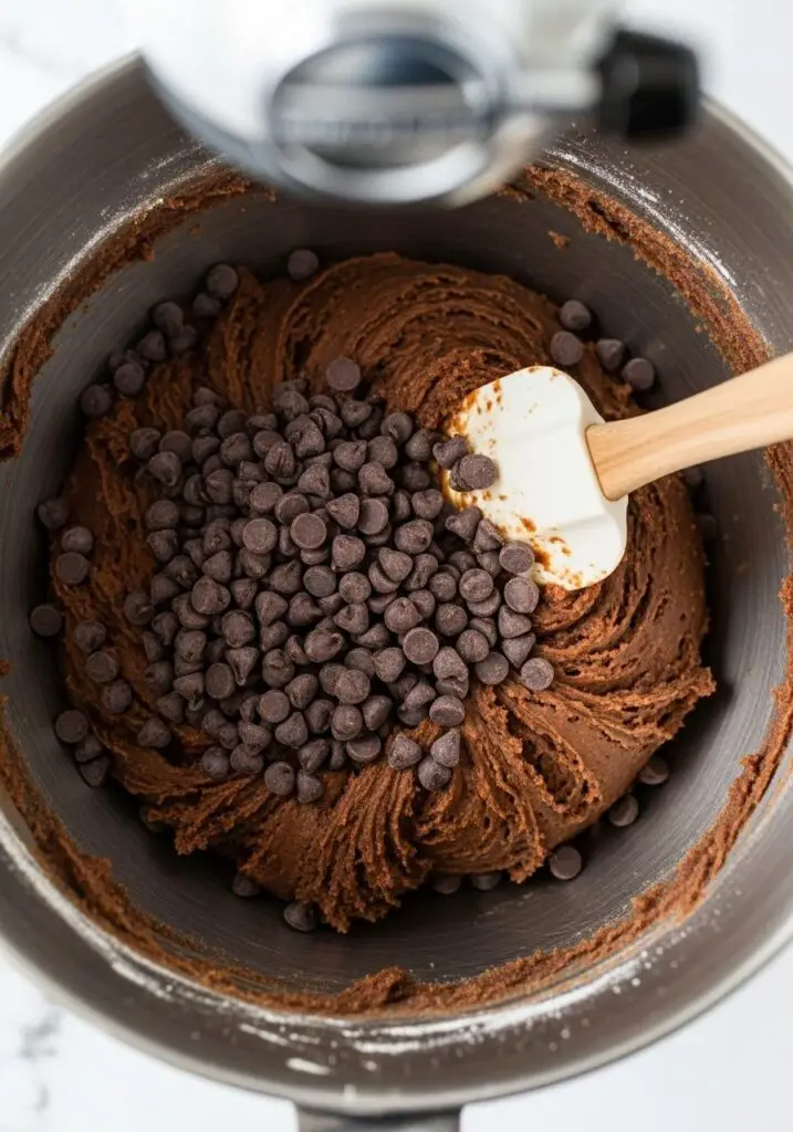 - Fold in the Chips: Remove the bowl from the mixer and fold in the chocolate chips by hand with a spatula.