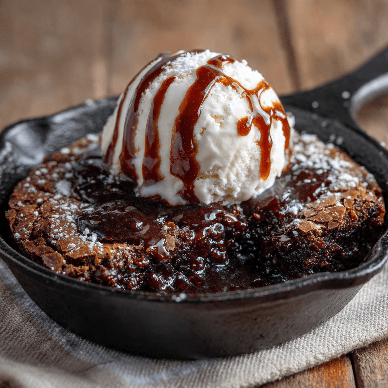 - Serve Warm: Let the skillet brownie cool for just a few minutes. Serve it warm, directly from the skillet, topped with giant scoops of vanilla ice cream.