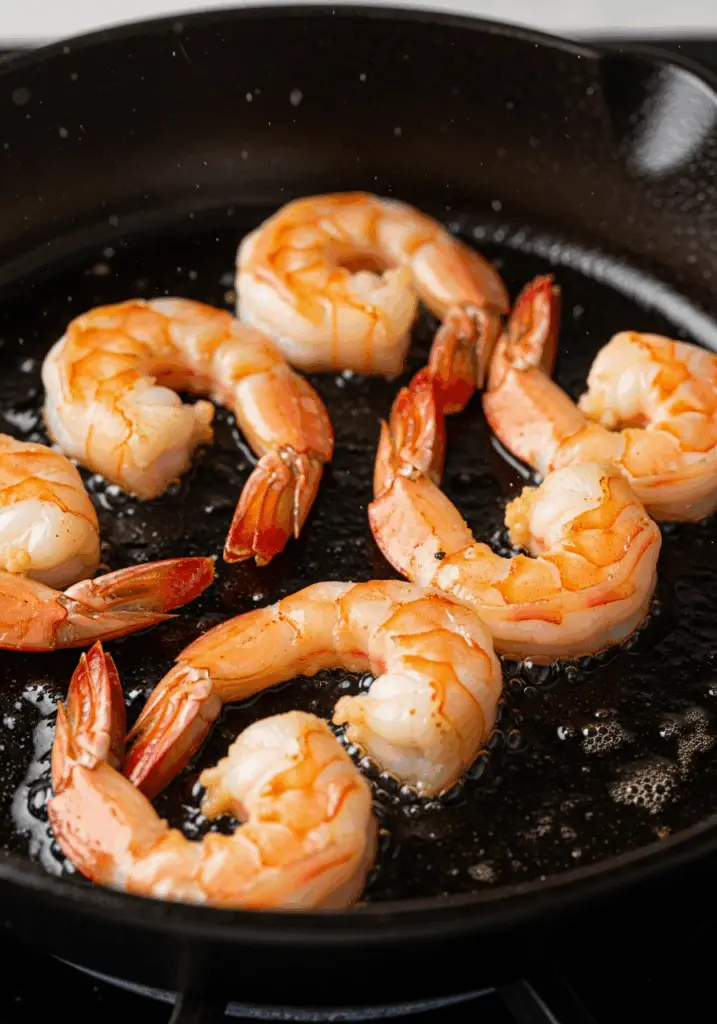 - Sear the Shrimp: Place the shrimp in the hot pan in a single layer, ensuring there’s a bit of space between each piece. If your pan isn’t big enough, it’s better to work in two batches than to overcrowd it.