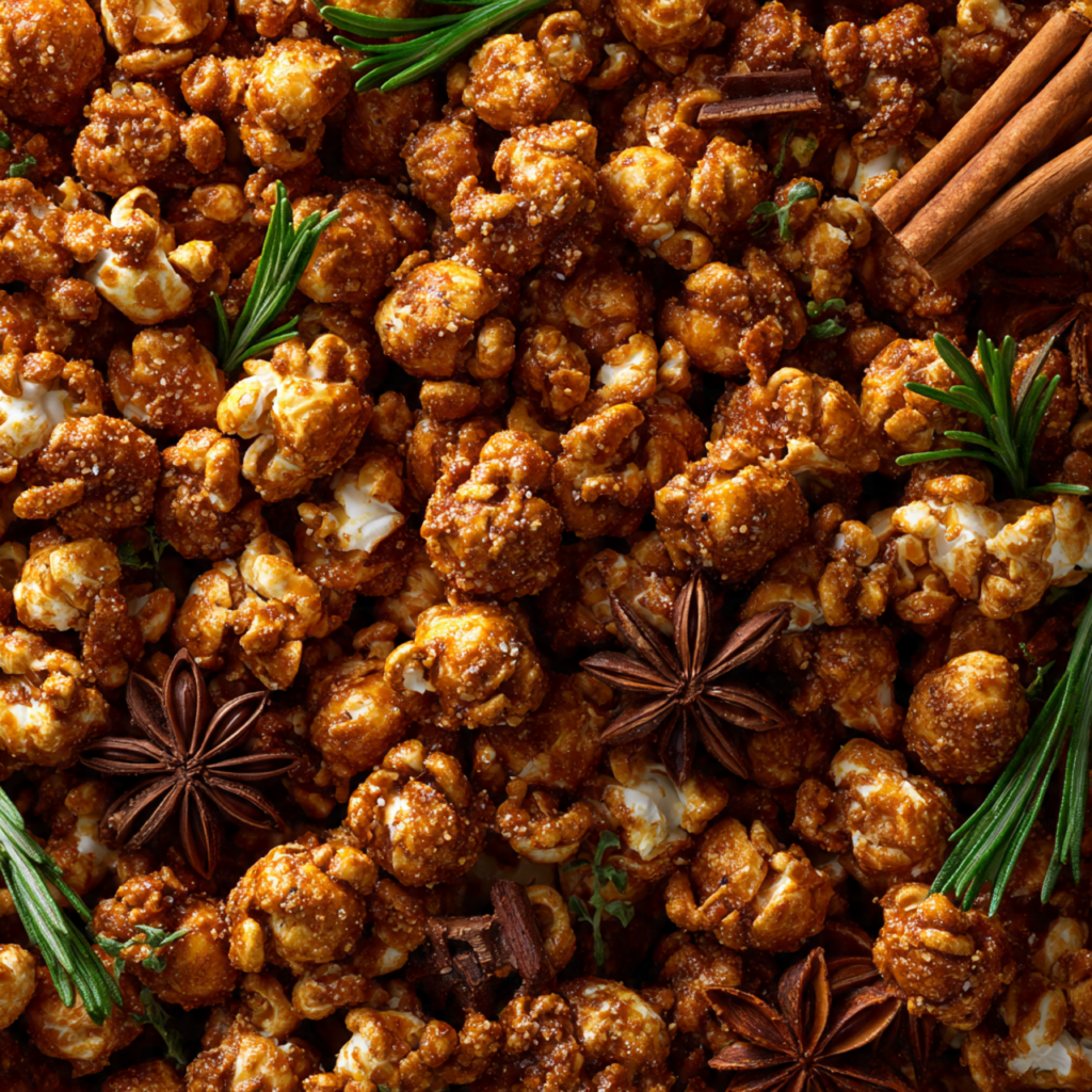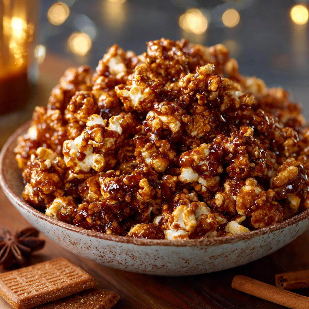 Crispy Gingerbread Caramel Corn with Holiday Spices