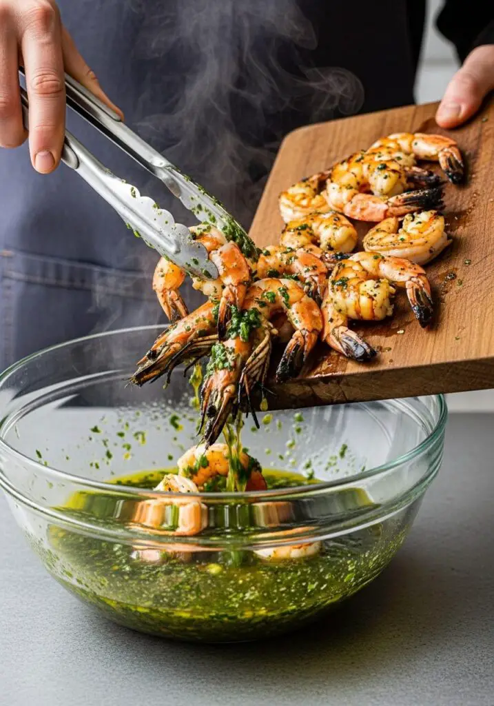 - The Final Toss & Serve: Immediately transfer the hot shrimp to a cutting board. Use a fork to carefully slide them off the skewers and right into the large bowl with the fresh garlic, lemon, and parsley mixture. Toss everything together to coat the hot shrimp in that incredible, fresh dressing. Season with a little more salt and pepper to taste, and serve immediately!