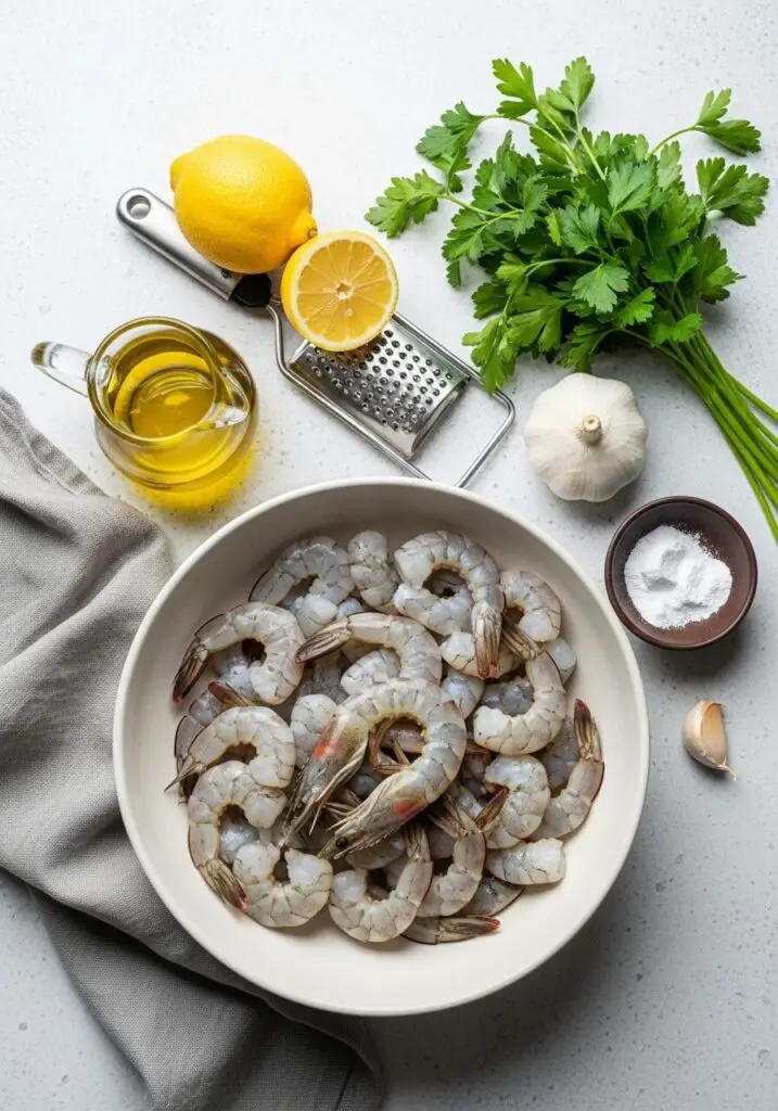 - Prep Your Two Dressings: While the shrimp chills, combine half of the minced garlic and half of the olive oil in a small bowl (this is for brushing before grilling). In a separate large bowl, combine the remaining garlic, the rest of the olive oil, the lemon zest, lemon juice, and fresh parsley (this is for tossing at the end).