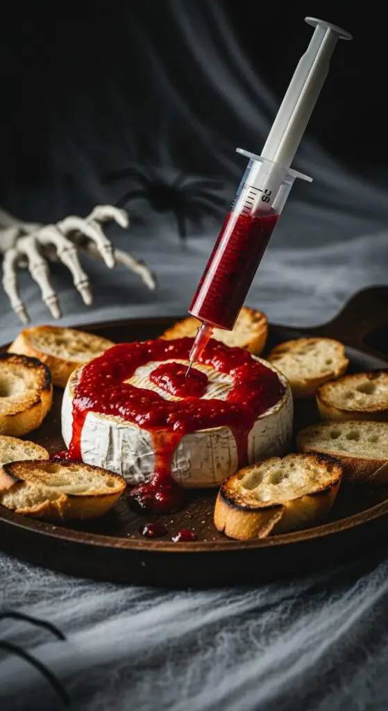 Imagine a wheel of warm, gooey, perfectly melted Brie cheese, oozing with a glistening, deep red “blood” and impaled with a syringe. It’s the kind of spooky, gory, and ridiculously delicious appetizer that makes everyone at a Halloween party stop and say, “Whoa, what is THAT?!” That, my friends, is the incredible, show-stopping magic of…