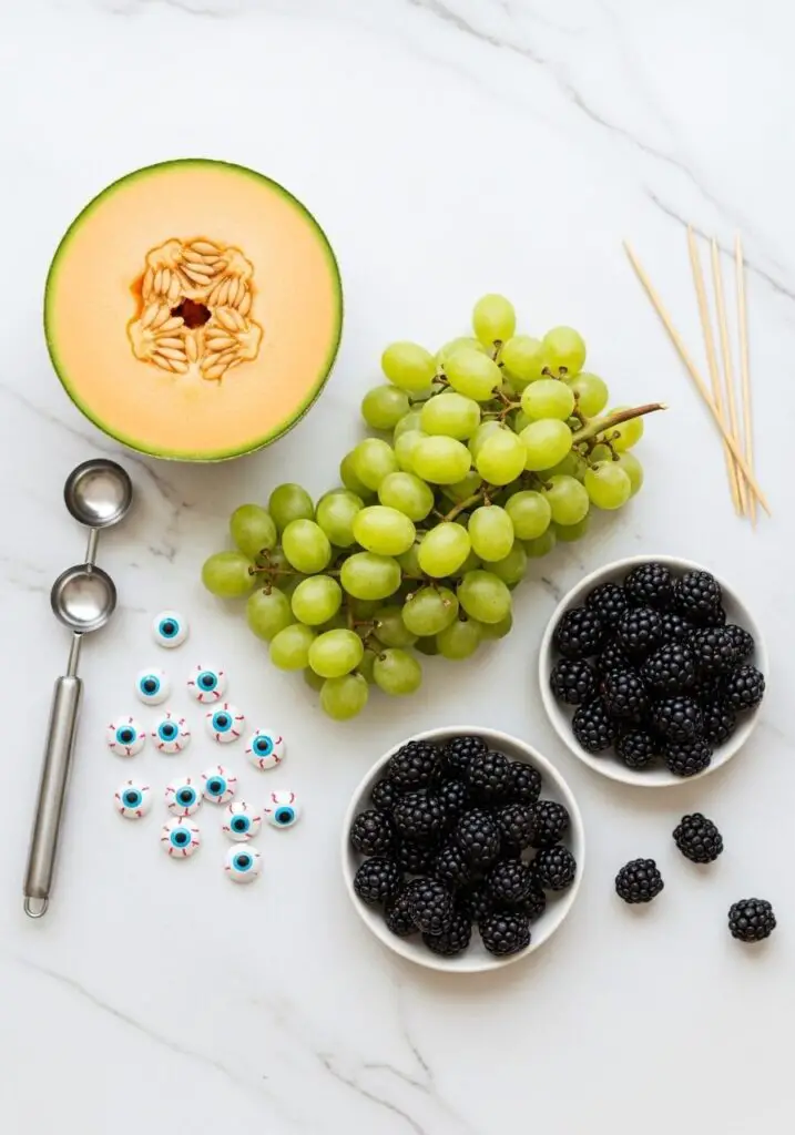 - ½ cantaloupe → For creating our little orange “pumpkins.”