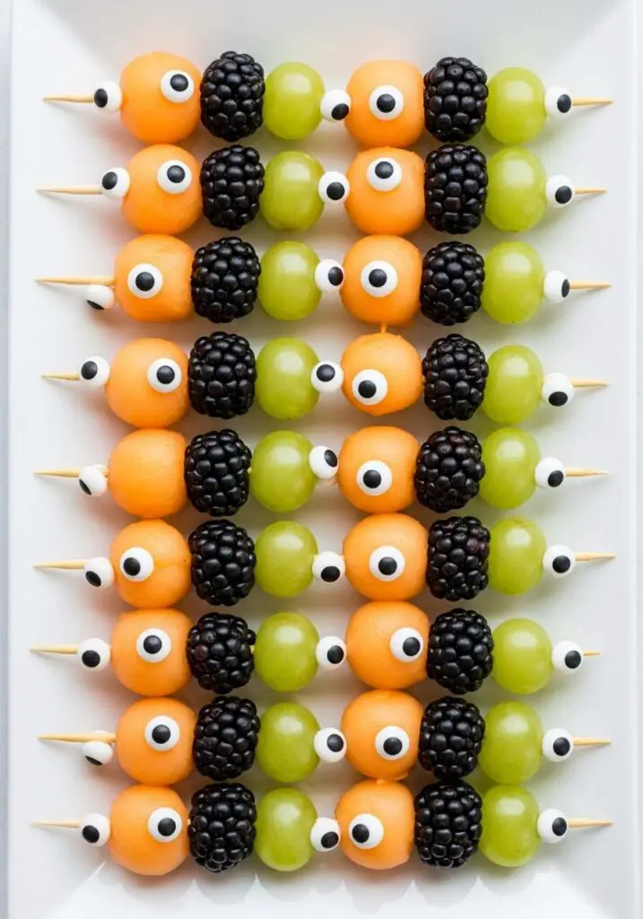 This is all about simple, fun assembly. Grab your fruit and skewers, and let’s create some spooky friends!