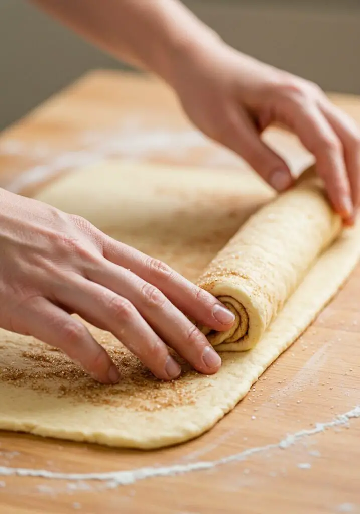 - Roll & Seal: Starting from the long side opposite your clean edge, carefully and tightly roll the dough up into a neat log. Roll it towards that clean edge. Once you reach the end, lightly brush the clean edge with just a little water (think of it as edible glue!). Press that clean edge firmly into the roll and use your fingers to smooth and seal it securely.
