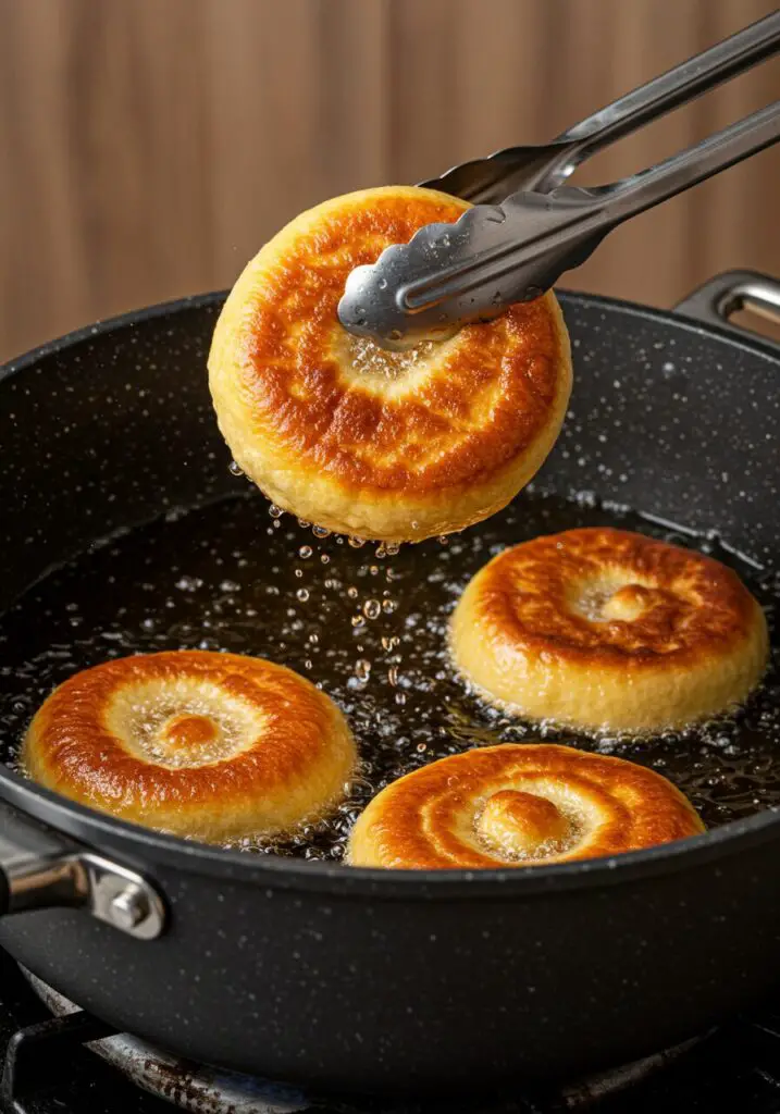 A: When you’re frying, aim for that beautiful deep golden-brown color on both sides. If your oil temperature is correct (that magic 365°F!), 90 seconds per side should cook them right through. If you’re baking them, they should be lightly golden brown and sound hollow when you tap them on the bottom. For extra assurance, an instant-read thermometer inserted into the center of a baked bun should read around 200-205°F (93-96°C).