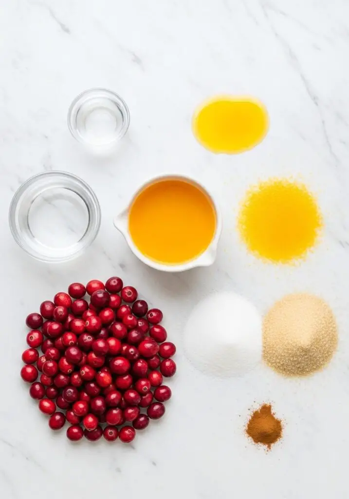 - ¾ cup pure orange juice → Use a pulp-free variety for the smoothest sauce. The bright citrus flavor is a perfect match for the tart cranberries.