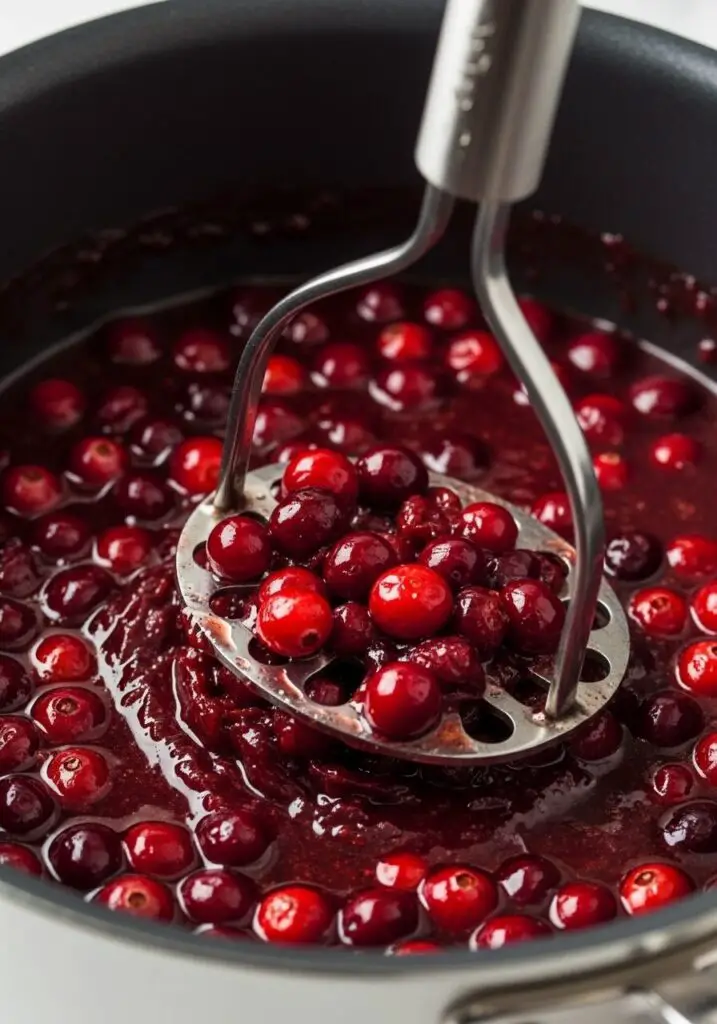 - Mash to Your Liking: Once most of the berries have popped, remove the pan from the heat. Use a potato masher to gently mash the cranberries against the side of the pot. A few gentle presses will create a textured, chunky sauce. The more you mash, the smoother your sauce will become.