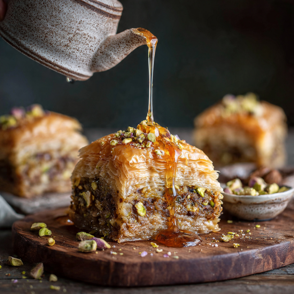 - Incredible Texture and Flavor: It is a perfect symphony of textures—crispy, flaky, crunchy, and syrupy—with the rich flavor of pistachios and a beautifully fragrant, sweet syrup.