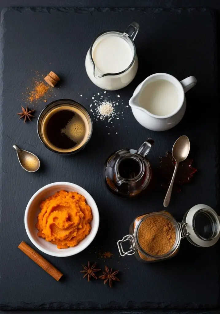 - Combine Everything: In a small pot or saucepan, add all of your ingredients: the espresso or coffee, milk, maple syrup, pumpkin puree, vanilla, pumpkin pie spice, and the pinch of salt.