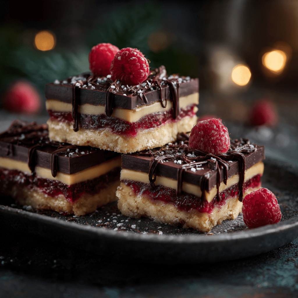 Layered Holiday Marzipan Bars with Raspberry and Chocolate