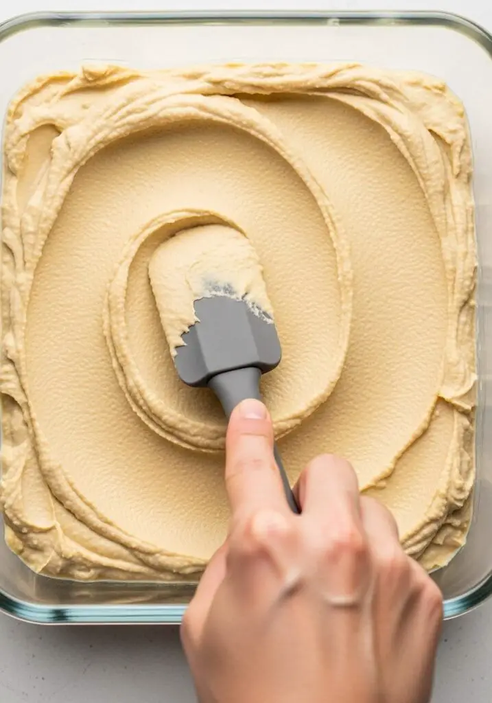 - Start with the Hummus. In an 8×8 inch clear glass dish, spread the hummus in an even, smooth layer across the bottom. This is your foundation.
