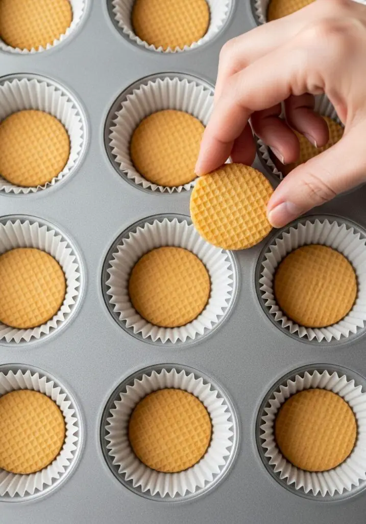 - Prep the Oven and Pans: Preheat your oven to 275°F. Place cupcake liners in two standard 12-well muffin pans. Place a single vanilla wafer cookie, flat-side down, in the bottom of each liner. This is your instant crust!