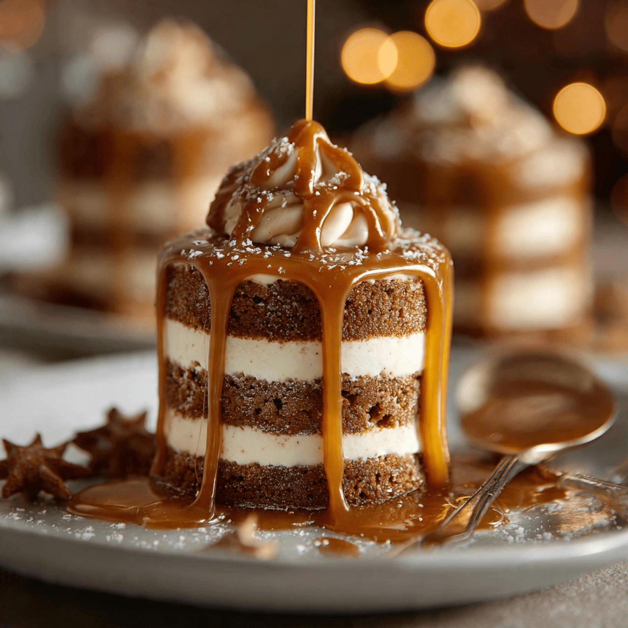 Mini No-Bake Gingerbread Icebox Cakes with Caramel Cream