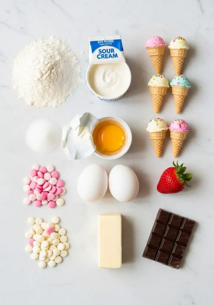 - 1 teaspoon strawberry extract & 2 drops pink gel food color → For the strawberry portion.