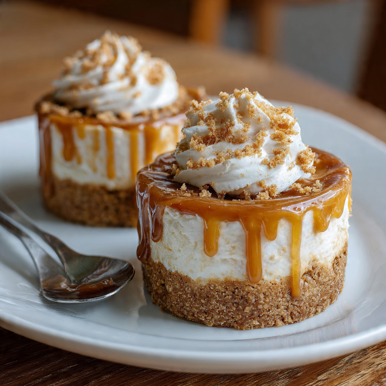 - Garnish and Serve: Just before serving, if desired, top each cheesecake with a dollop of additional whipped topping and a sprinkle of Biscoff cookie crumbs.